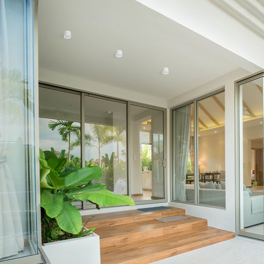 Kantet indbygget væglampe, egnet til både inden- og udendørs brug. Skal installeres for nedadrettet belysning. Findes i tre forskellige farver. Monteringsboks inkluderet.