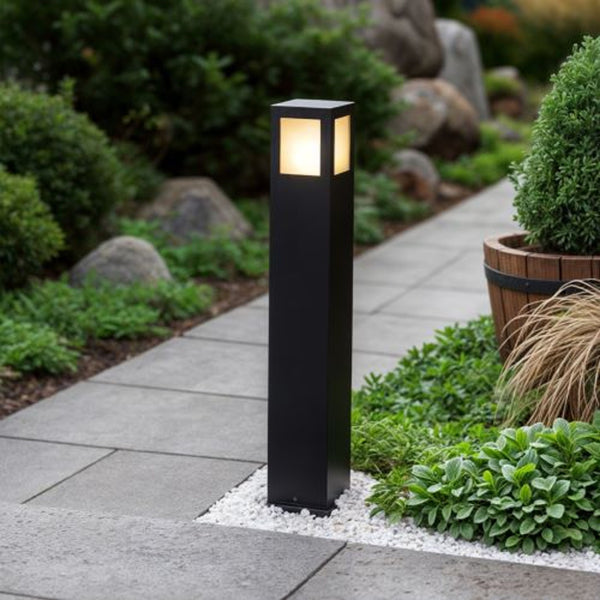 Kantet indbygget væglampe, egnet til både inden- og udendørs brug. Skal installeres for nedadrettet belysning. Findes i tre forskellige farver. Monteringsboks inkluderet.