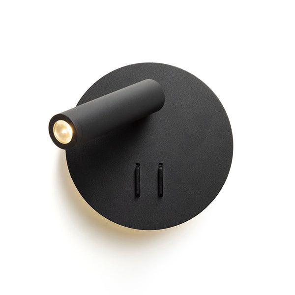 Elegant spotlight med afbryder og indbygget LED, velegnet til soveværelser. Basen har en feed-in til kabler for mulighed for at oprette forbindelse til en nærliggende stikkontakt. Kabel medfølger ikke.