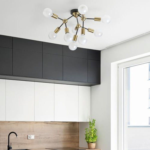 Designet pendel med dekorative messingcylindere til fatninger. Armaturen kan formes ved at justere armene på den horisontale akse. Velegnet til LED-lyskilder med E27-fatning.