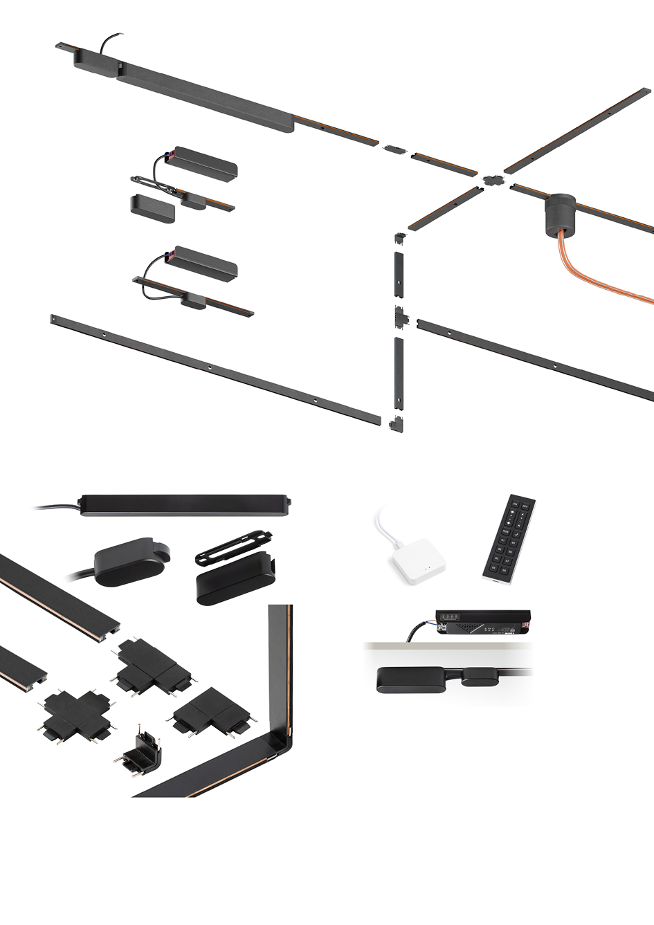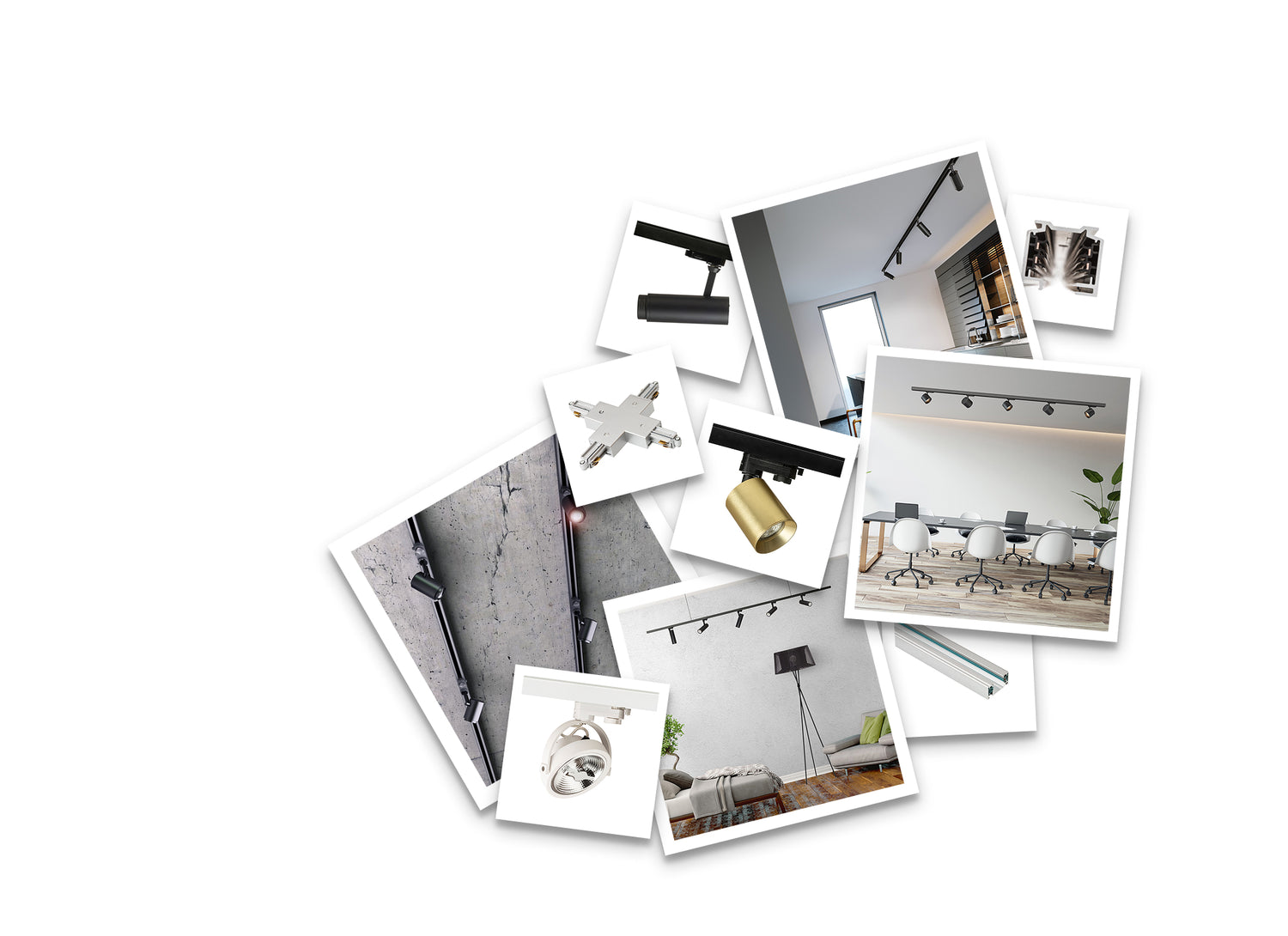 Universelt skinnesystem, perfekt til alle anvendelser. Ideel til boliger og små kommercielle rum.