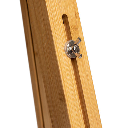 Gulvlampebase af bambus som kan justeres i højden, med E27-sokkel. Passende skærme: AMBITUS 46/24, DELISA 35/30, CONNY 25/30, CONNY 35/30, RON 40/25, TEMPO 30/19.
