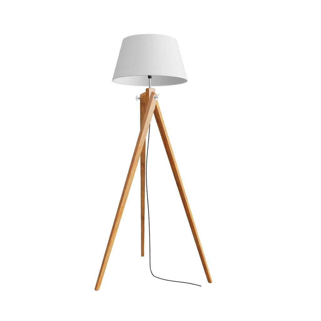 Gulvlampe med stofskærm og en elegant bambusfod. Velegnet til LED E27 lyskilder.