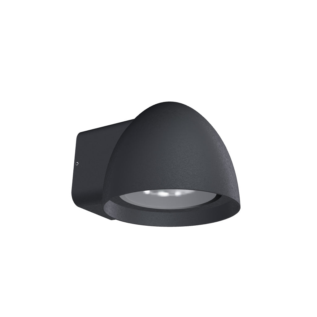 Udendørs væglampe for GU10 lyskilder. Udsiden af lampen er af lakeret formstøbt aluminium.
