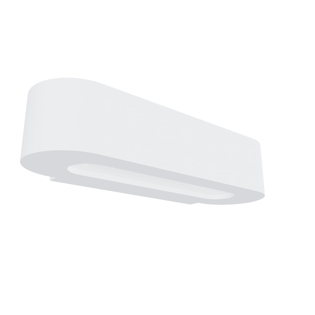 UP/DOWN væglampe af gips. Undersiden har et dæksel af satineret glas. Kan males med almindelig vægmaling.