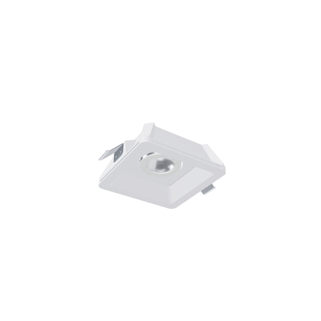 Kantløs taglampe af gips med firkantet åbning. Overfladen kan males med almidelig maling. Kun for montering i gipslofter.