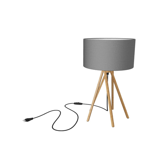 Bordlampe med base af bambus og tekstilskærm. Levers umonteret.