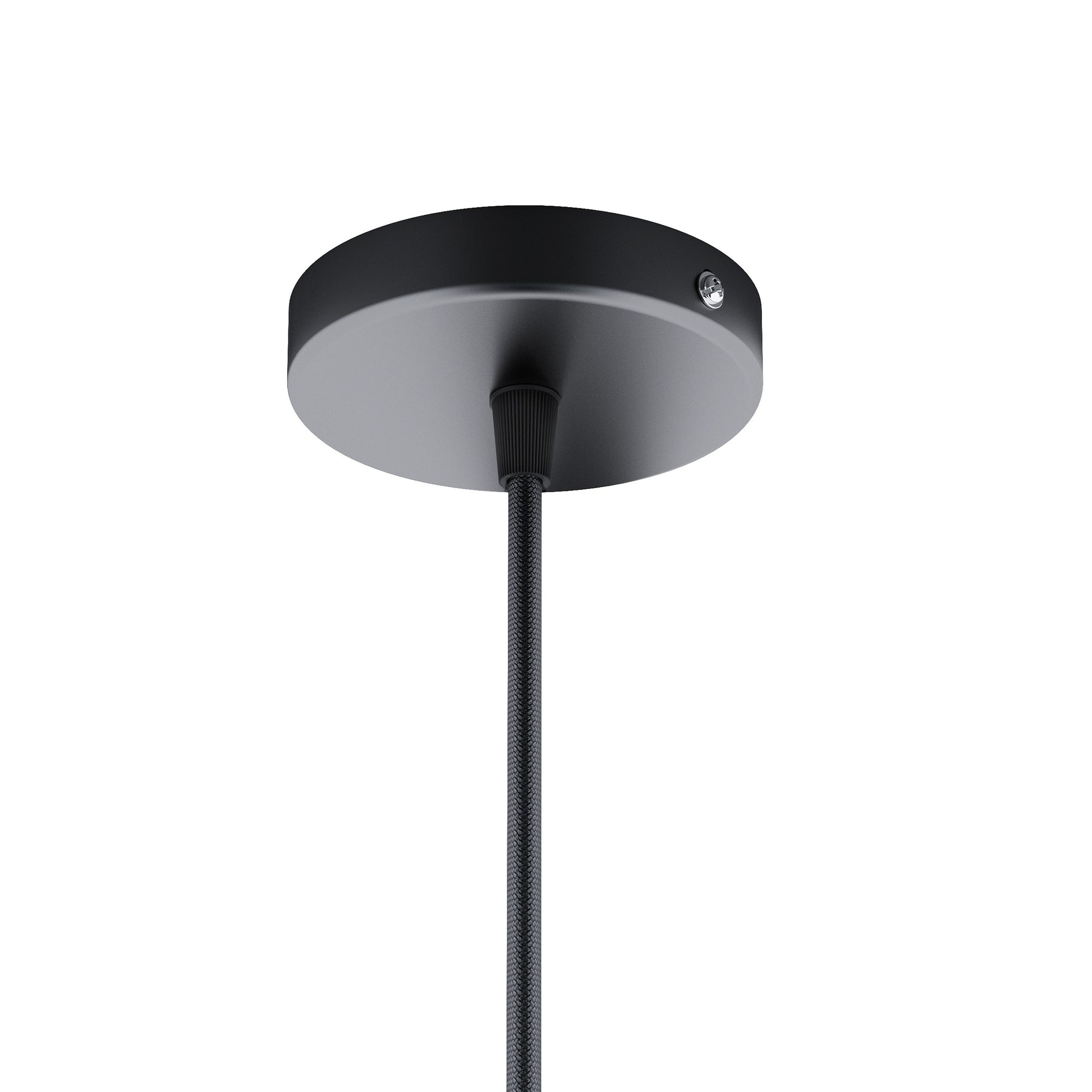 Pendelsæt med rund sortlakeret loftbase, tekstilledning og E27-sokkel i metal. Passende for brug både med og uden skærm. Passende skærme: DOUBLE 40/30, DOUBLE 55/30, ASPRO 40/30, ASPRO 55/30, RON 40/25, RON 55/30, RON 60/19, TEMPO 30/19, TEMPO 50/19.