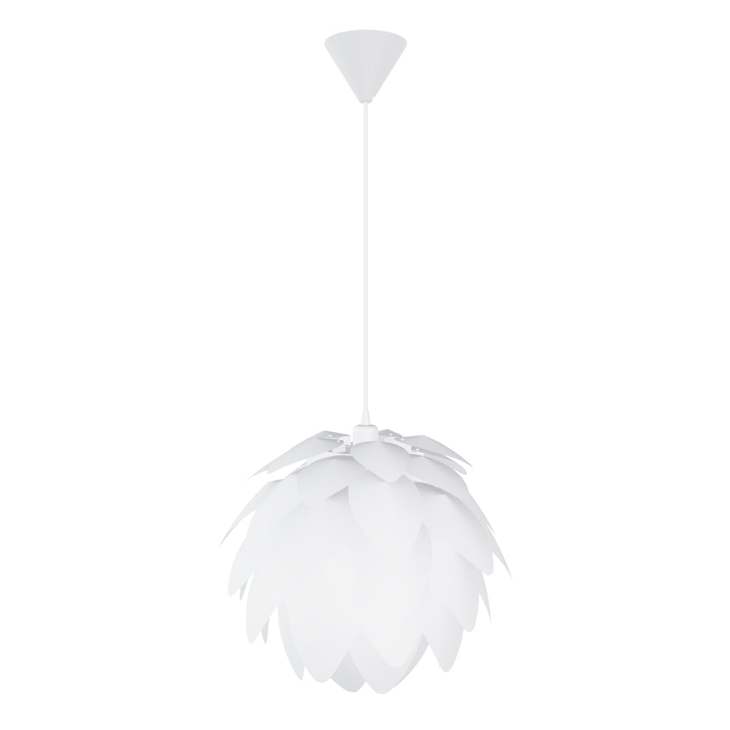 Dekorativ pendel med dækblade af plastik, findes i tre forskellige farver. Leveres umonteret.