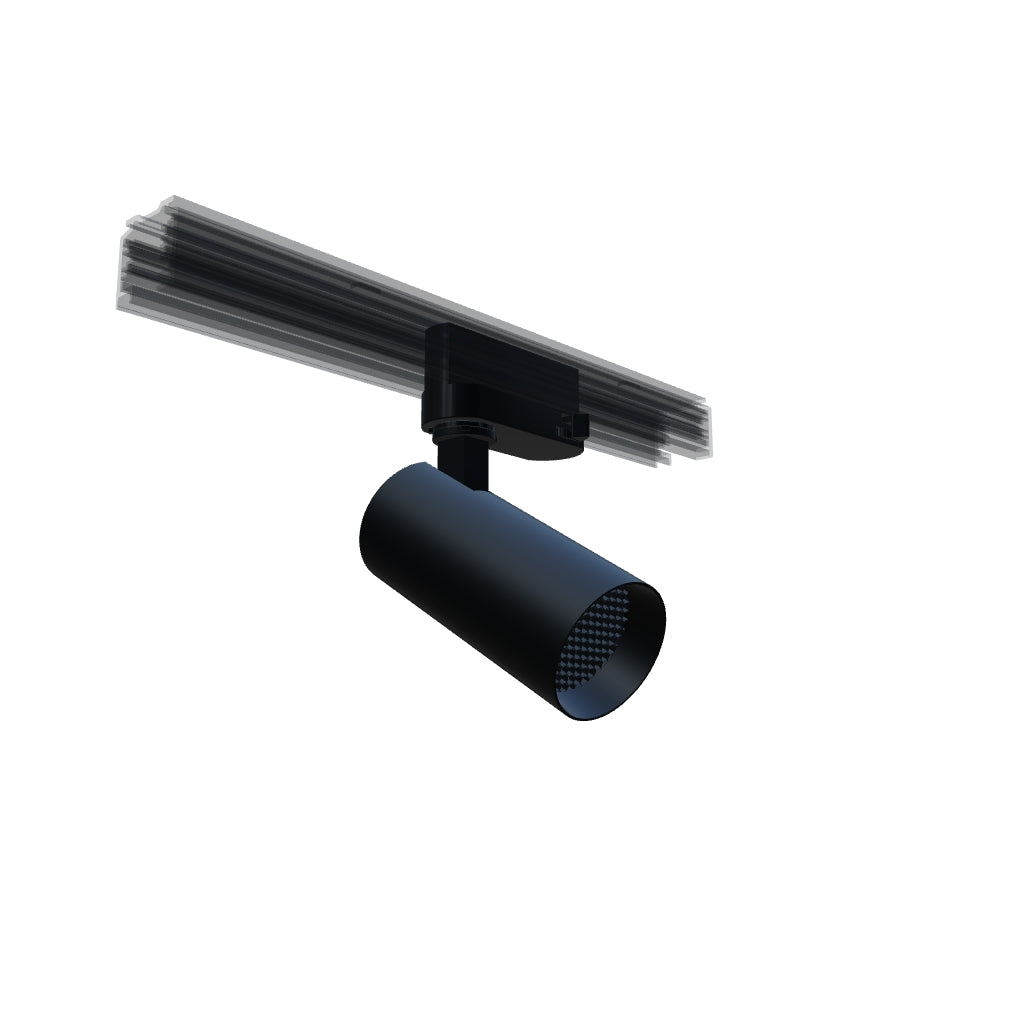 Cylinderformet spotlight med GU10-sokkel for 3-faset skinne.
