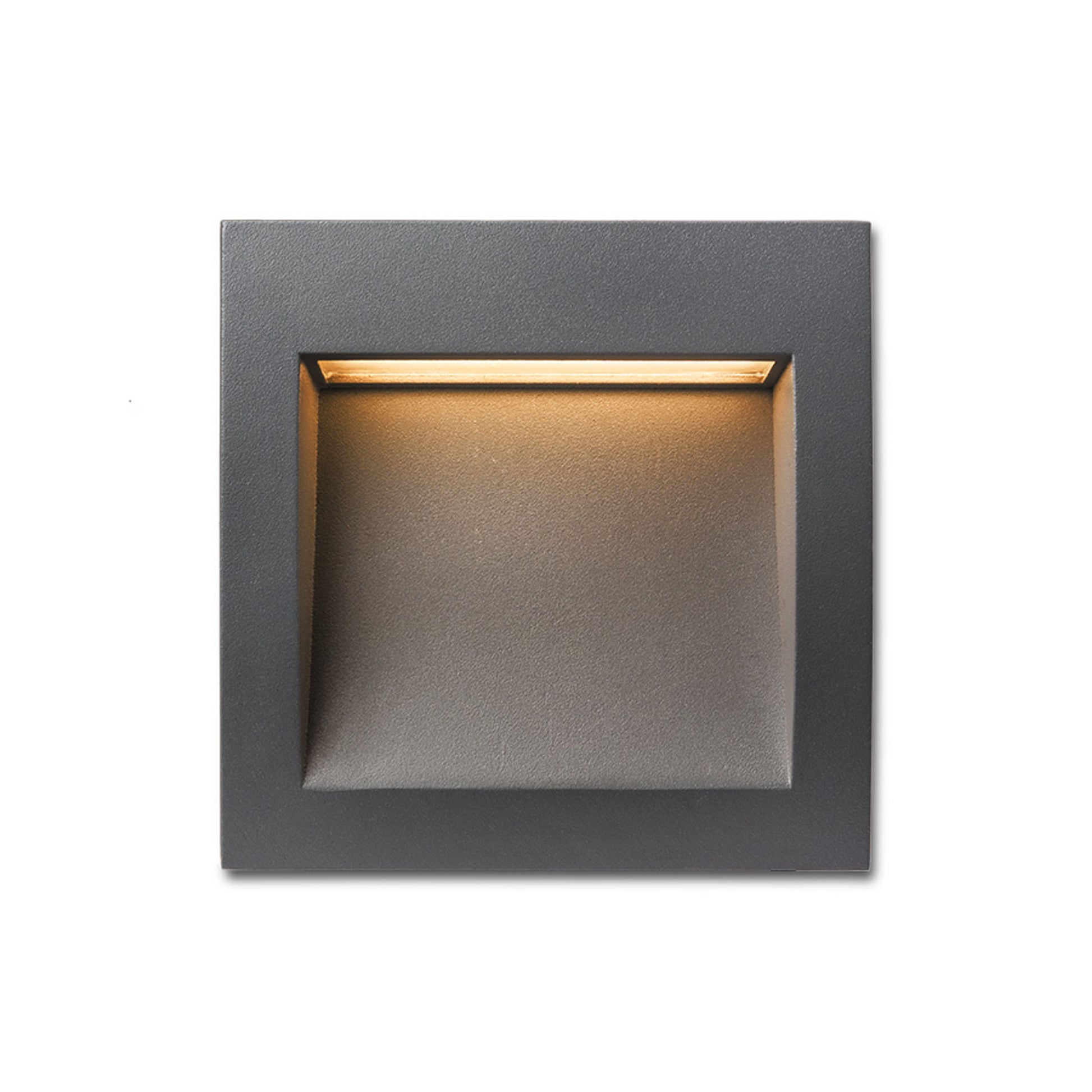 Indbygget væglampe med indbygget LED. Velegnet som guide lys til stier, trapper eller terrasser. Skal kun installeres nedad.
