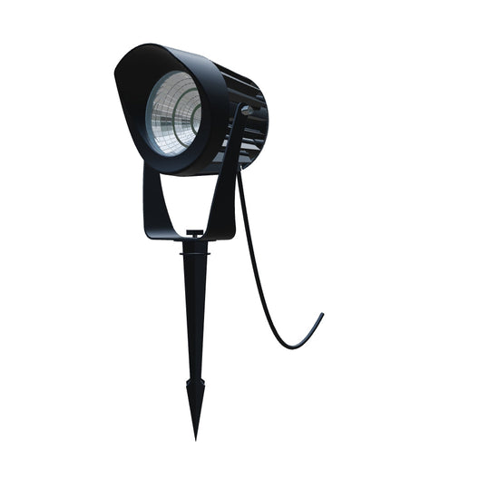 Højtydende LED-reflektor på en spyd til udendørs brug. Leveres med en tilslutningskabel uden stik i enden!