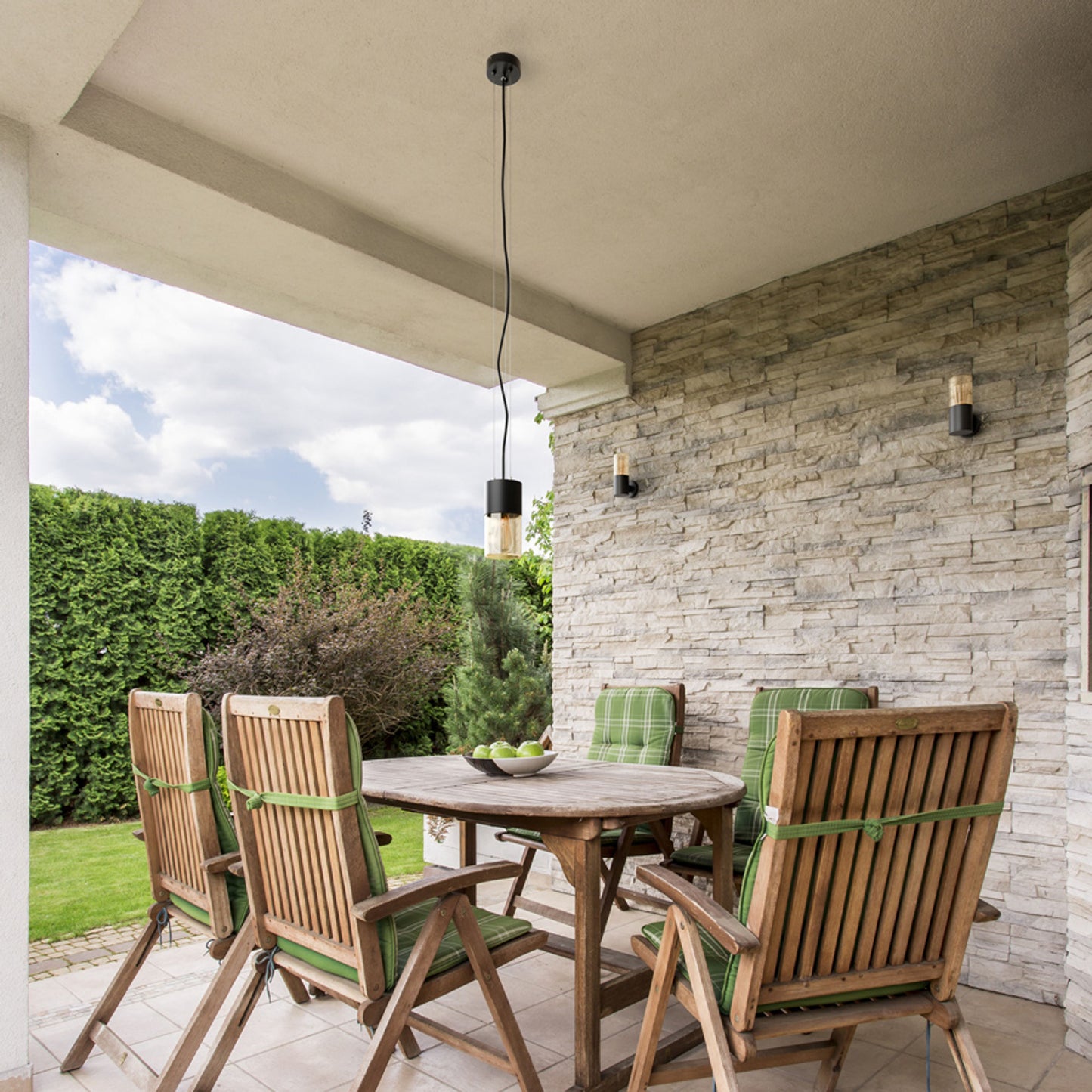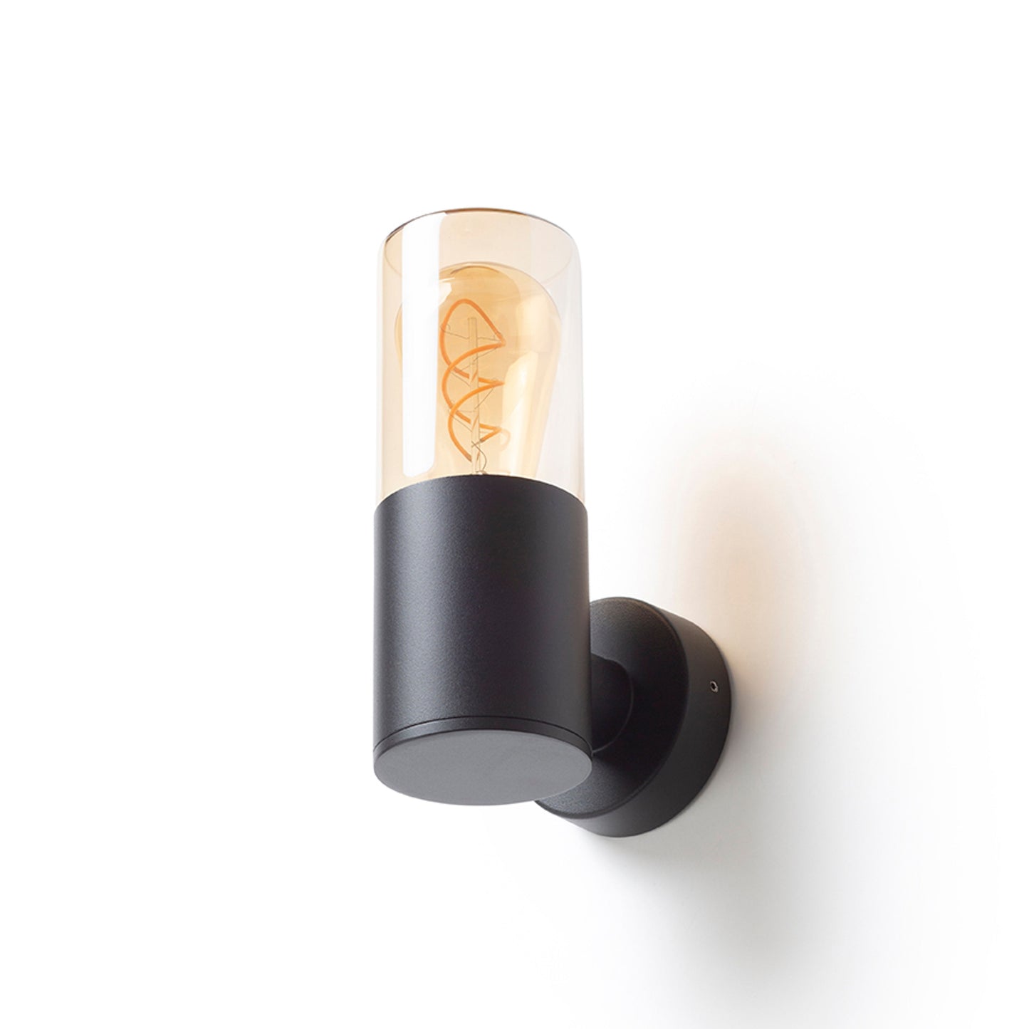 Væglampe til udendørs brug med ravfarvet glas til stemningsbelysning og E27-fatning til LED-lyskilder.