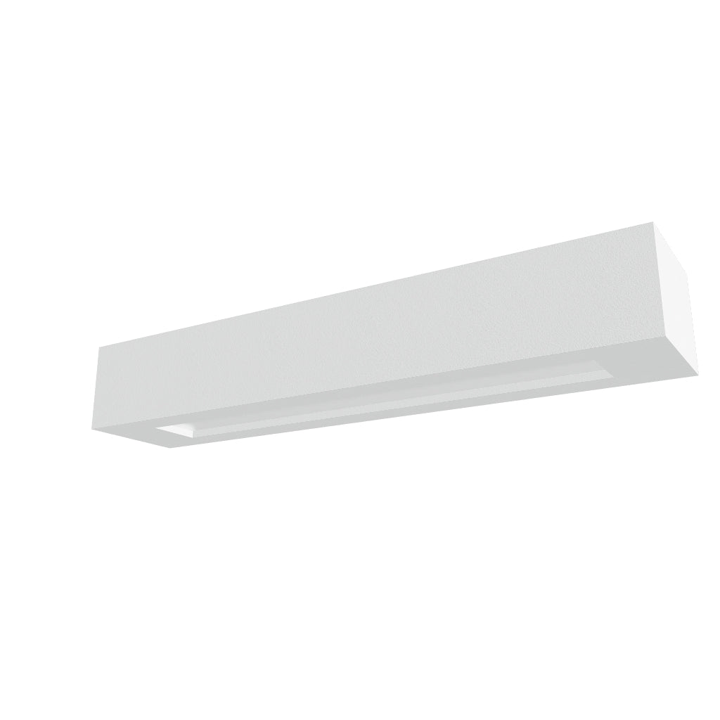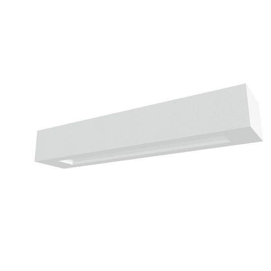 UP/DOWN væglampe af gips. Undersiden har et dæksel af satineret glas. Kan males med almindelig vægmaling.