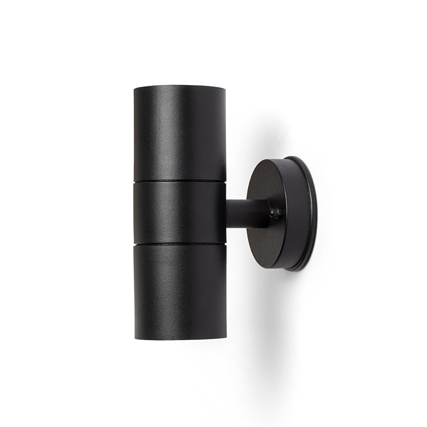 Cylindrisk udendørs væglampe af kulfiber med GU10-fatning til LED-lyskilder. Kulfiber har en forbedret tolerance over for saltvandsklima.