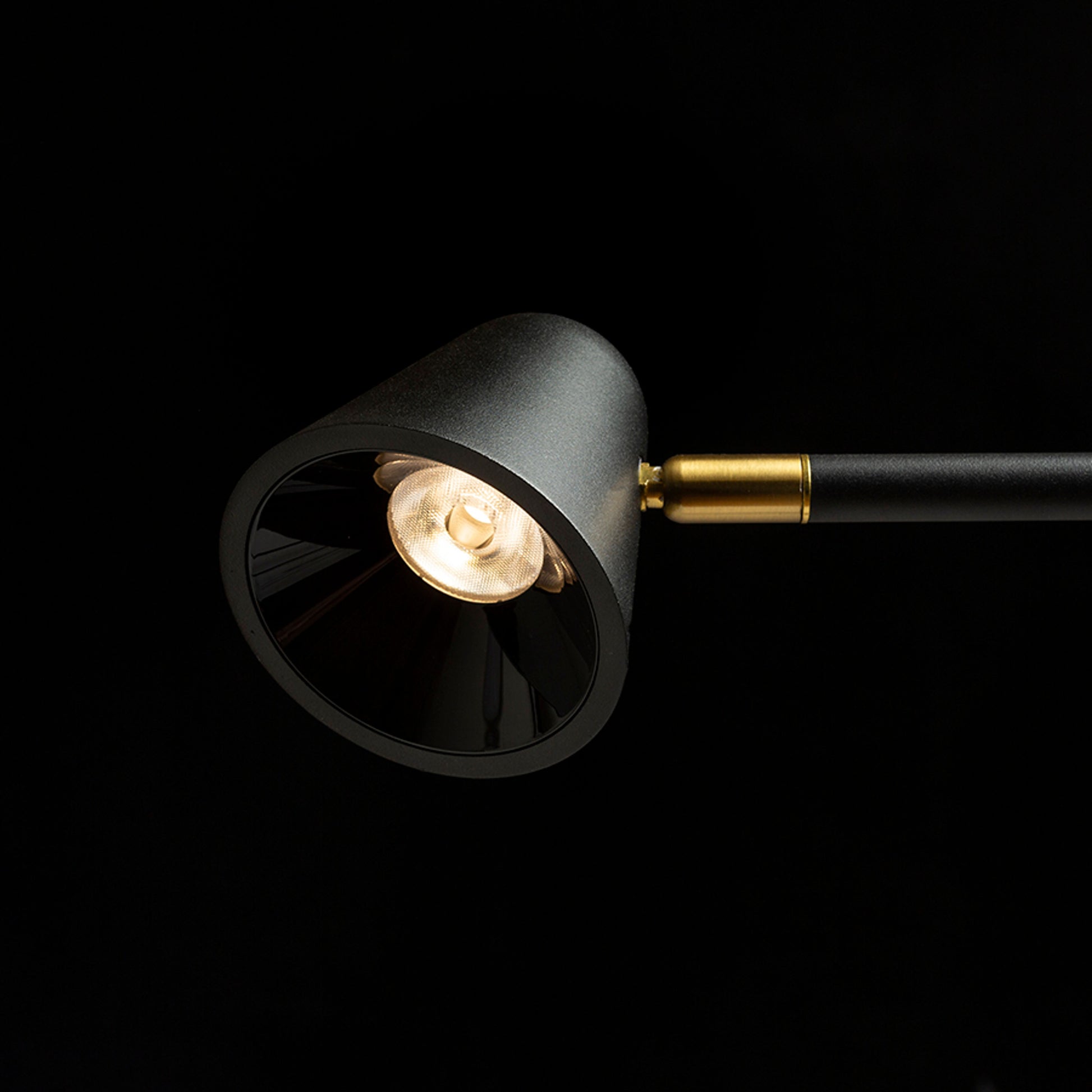 En elegant LED gulvlampe i sort, med messingfarvet led. Du kan justere