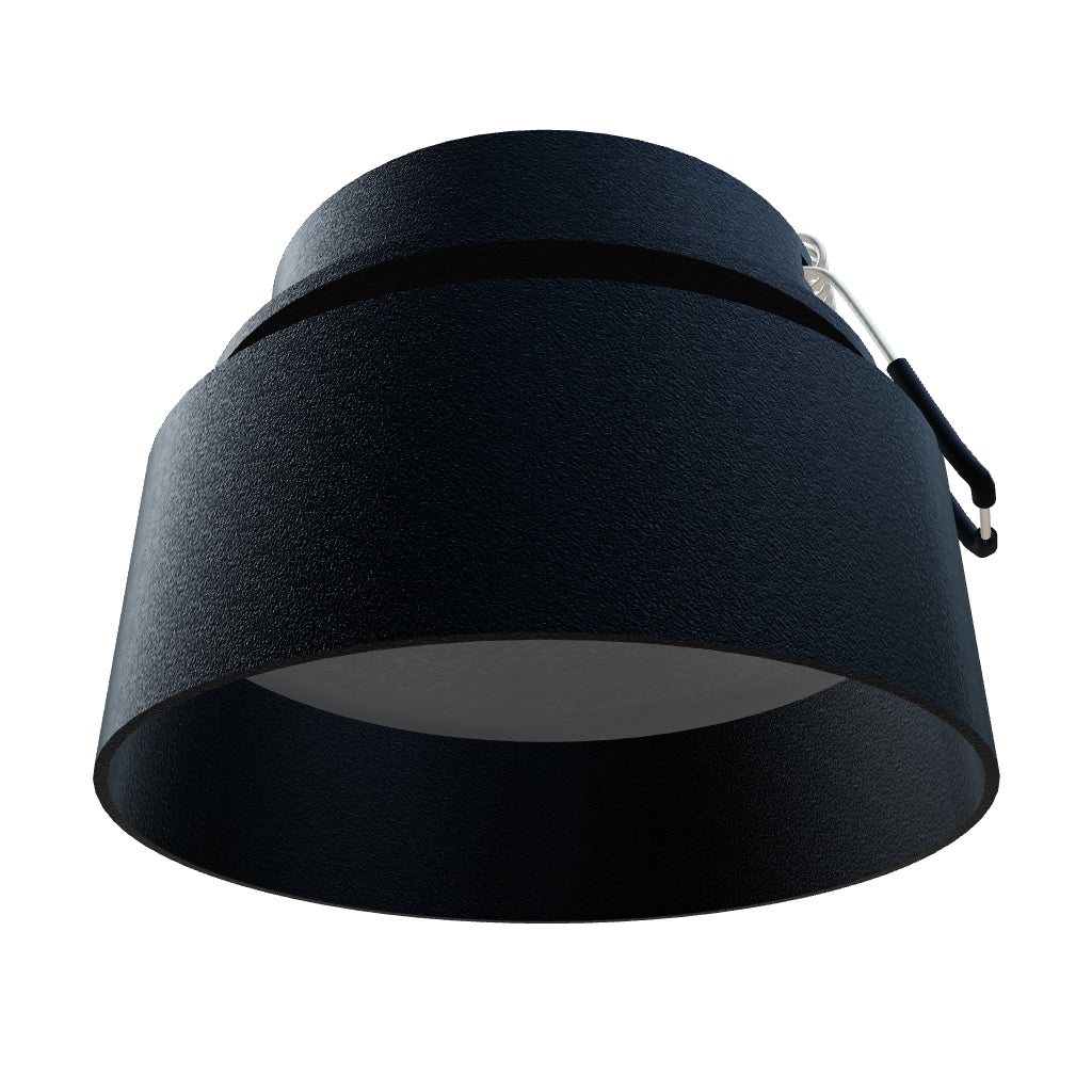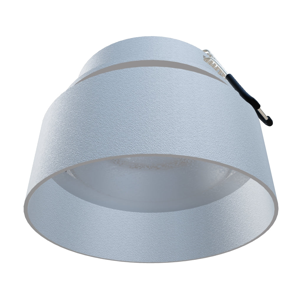 Delvist indbygget aluminiumlampe med forskydning til indirekte belysning, designet til LED-lyskilder med GU10-fatning. Kun til installation i gipslofter.